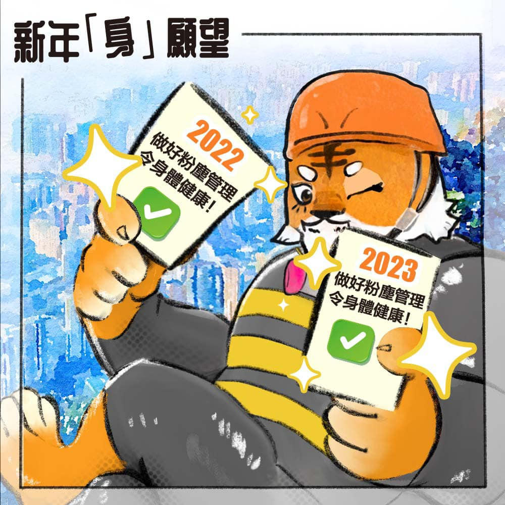 虎年梗係要同老虎做朋友!今年介紹個新朋友比大家認識,佢叫大師傅,細心、專業,又精通各樣建築技術,最重要喺新一年繼續同各位師傅一齊做好粉塵管理五步曲,隔離塵埃、抽風除塵、灑水減塵、佩戴口罩同定期驗身,多多指教!